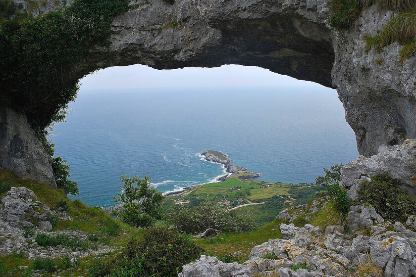 Durante la subida se atraviesan zonas de roca caliza y praderas donde el terreno puede volverse resbaladizo, especialmente tras la lluvia. Es recomendable llevar calzado de montaña, agua y una prenda de abrigo, ya que la brisa marina puede sorprender incluso en los días soleados. Al alcanzar la cresta, el esfuerzo se ve recompensado: ante los ojos aparecen los dos arcos naturales que dan nombre al lugar, abriéndose al infinito azul del Cantábrico. El contraste entre la roca blanca, el verde intenso del monte y el mar en movimiento es una imagen difícil de borrar.