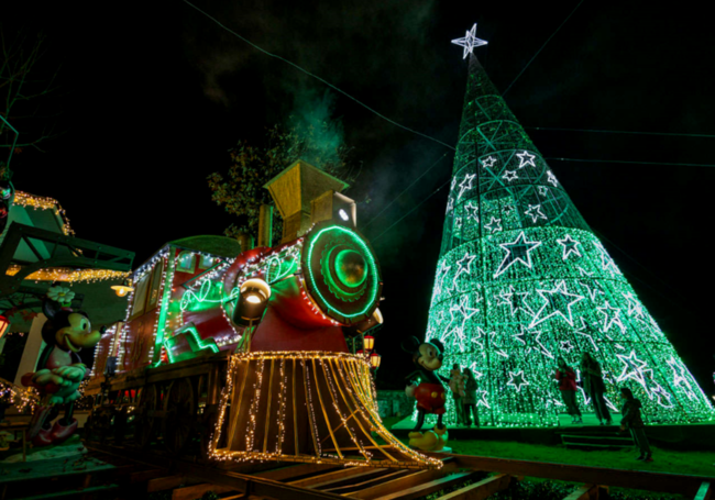 Uno de los grandes atractivos del pueblo son sus casas temáticas, auténticas protagonistas del paseo nocturno. Cada fachada cuenta una historia distinta: fábricas de juguetes llenas de muñecos en movimiento, engranajes luminosos y elfos trabajando sin descanso; casas convertidas en dulcerías, escuelas navideñas o escenarios de cuentos clásicos. Todo está hecho con mimo y creatividad, sin grandes artificios, pero con una imaginación desbordante. No hay dos fachadas iguales y ese es, precisamente, parte de su encanto. Caminar por sus calles es ir descubriendo pequeñas sorpresas a cada paso.