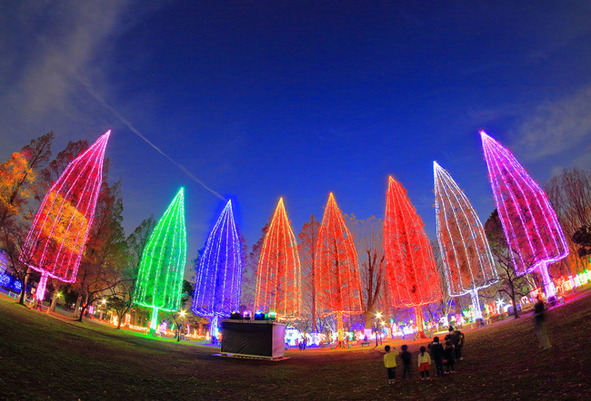 La iluminación navideña de Adachi se centra en Motofuchie Park y alrededores, donde los típicos arboles Keyaki se enfundan en trajes luminosos multicolor, mostrando una línea arbórea que se ha convertido en su imagen más típica (foto de portada).